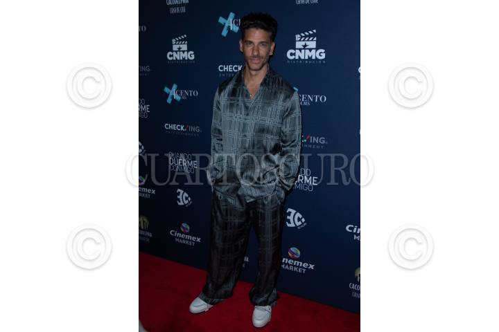 Erick Elías a su paso por la lafombra roja por el estreno de la película “Cuando duerme conmigo”, en una plaza de la Avenida Insurgentes.