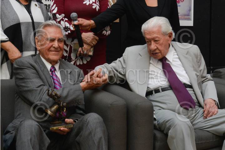 Los actores: Ignacio López Tarso, y Eric del Castillo, durante la ceremonia de entrega de reconocimiento a la trayectoria artística en la Cámara de Diputados.