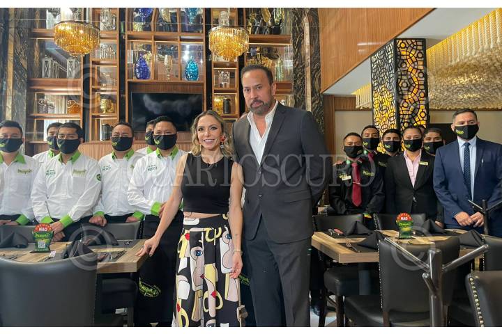 TOLUCA, ESTADO DE MÉXICO, 11OCTUBRE2023.- Ari Borovoy y Erika Saba integrantes de OV7, Claudio Romero realizaron el corte de listón de Mr Pampas sucursal número 26 en Toluca; esta cadena cuenta con restaurantes en Mexicali, Monterrey, Torreón, Tijuana, Ensenada, entre otros. FOTO: CRISANTA ESPINOSA AGUILAR /CUARTOSCURO.COM