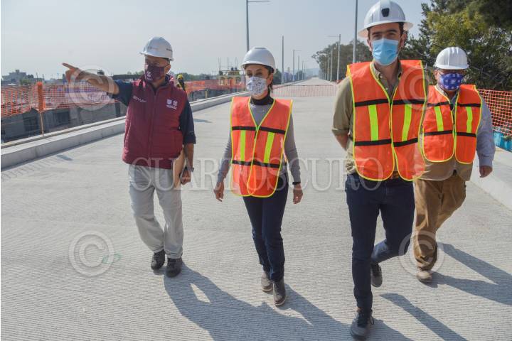 Claudia Sheinbaum, jefa de Gobierno, encabezó la supervisión de avance de obra del Trolebús Elevado, Eje 8 Sur. Fue acompañada por: Jesús Antonio Esteva Medina, secretario de Obras y Servicios; Andrés Lajous Loaeza; secretario de Movilidad, y Martín López Delgado, director General del Servicio de Transportes Eléctricos.