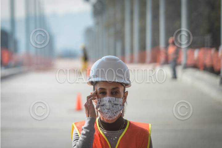 Claudia Sheinbaum, jefa de Gobierno, encabezó la supervisión de avance de obra del Trolebús Elevado, Eje 8 Sur.