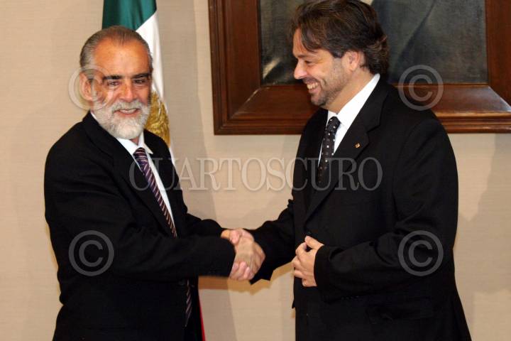 México, D.F., 02DICIEMBRE2004.- Diego Fernández de Cevallos, presidente de la mesa directiva del senado, recibió a Ernest Benachi, primer ministro de Cataluña, en el Senado de la República. FOTO: Moisés Pablo/CUARTOSCURO.COM