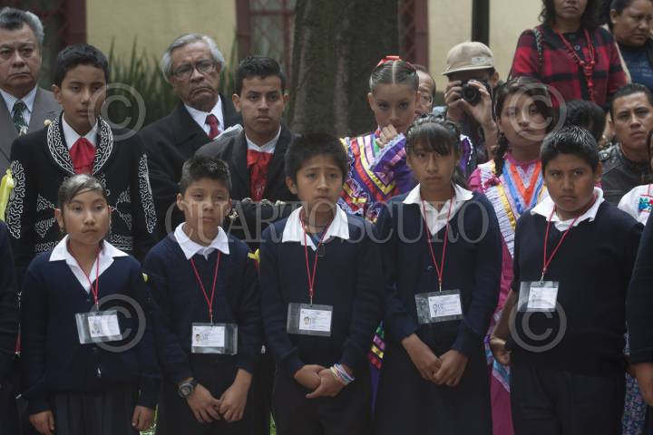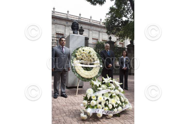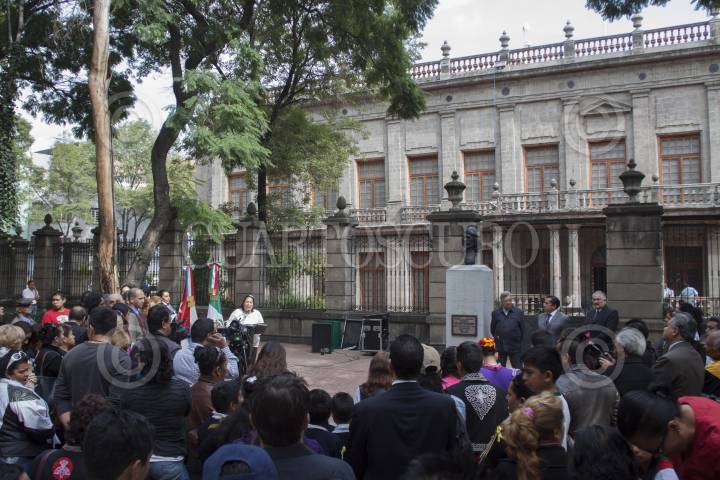 MÉXICO, D.F., 08OCTUBRE013.- En el busto de Ernesto Che Guevara, ubicado en el Parque de San Carlos en la colonia Tabacalera, se conmemoro un aniversario más de la muerte del héroe de la Revolución Cubana, quien fue ultimado en la sierra de Bolivia por órdenes de la agencia estadounidenses CIA, en la ceremonia acudió el embajador cubano Dagoberto Rodríguez y los niños de las primarias Ernesto Guevara de la Serna y José Martí. FOTO: MOISÉS PABLO /CUARTOSCURO.COM