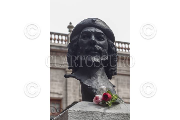 Un busto de Ernesto "Che" Guevara en el Parque Tabacalera, el cual fue instalado en el Parque Tabacalera, para conmemorar el 30 aniversario del asesinato del "Che" en Bolivia.