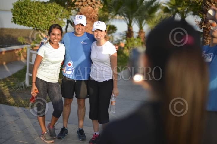 LA PAZ, BAJA CALIFORNIA, 15MAYO2014.- Ernesto Cordero Arroyo, candidato a la presidencia del Partido Acción Nacional (PAN), realizó una carrera matutina por el malecón en compañía de militantes panistas, entre ellos, María Helena Hernández de Covarrubias, presidenta del DIF estatal. FOTO: CUARTOSCURO.COM