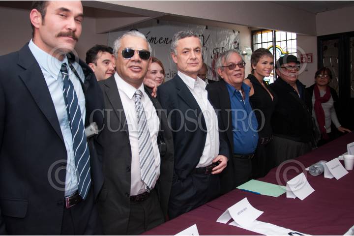 MÉXICO, D.F., 22FEBRERO2012.- Los actores, José Carlos Rodríguez, Mario Zaragoza, Arturo Ríos, el director, Xavier Robles y los actores, Roxana Chávez y Ernesto Gómez Cruz, presentaron en conferencia de prensa la cinta " Crímenes y TV" que versa sobre un escándalo sexual de un candidato presidencial y seis historias engarzadas. FOTO: FRANCISCO RODRÍGUEZ / CUARTOSCURO.COM