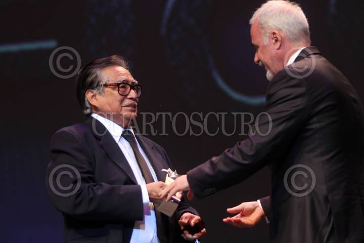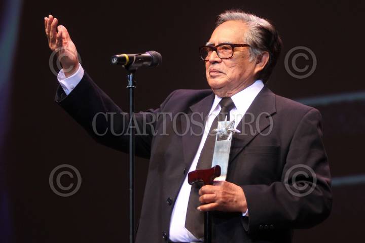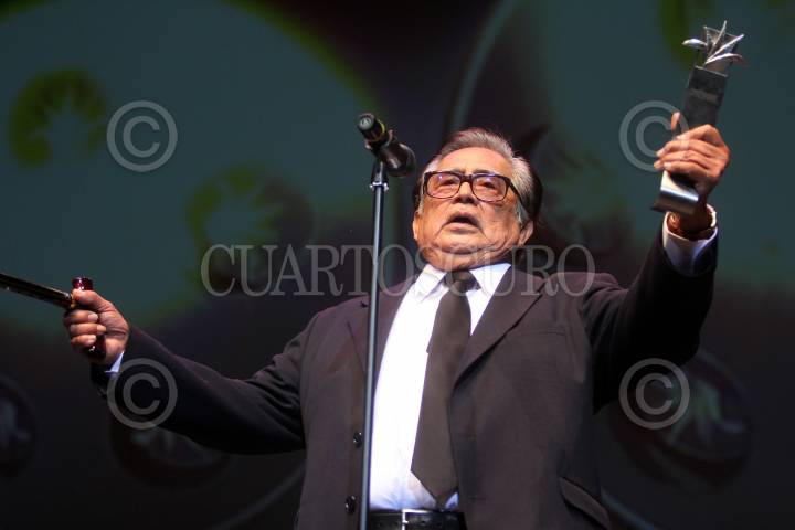 ZAPOPAN, JALISCO, 02MARZO2013.- Esta noche en el Auditorio Telmex de esta ciudad se llevo a cabo la inauguración la edición numero 28 del Festival Internacional de Cine en Guadalajara (FICG), en donde el primer actor Ernesto Gómez Cruz recibió de manos de Raúl Padilla López, Presidente del Patronato del (FICG), el reconocimiento Mayahuel de Plata. FOTO: FERNANDO CARRANZA GARCÍA /CUARTOSCURO.COM