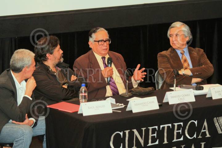 MÉXICO, D.F. 26JUNIO2014.- Como parte de la mesa redonda del "Día de la Academia" en la Cineteca Nacional, fue realizado el homenaje al primer actor Ernesto Gómez Cruz, por su trayectoria como actor mexicano. Durante el homenaje sintieron los cineastas Armando Casas y Raúl Adalid. FOTO: ADOLFO VLADIMIR /CUARTOSCURO.COM