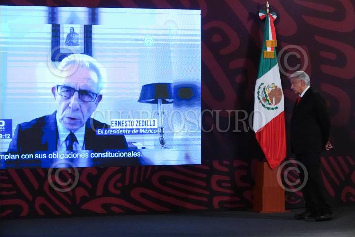CIUDAD DE MÉXICO, 04NOVIEMBRE2024.- Claudia Sheinbaum, Presidenta de México, habló sobre el artículo que escribió el ex Presidente, Ernesto Zedillo, quién se pone a la Reforma al Poder Judicial. Expuso al priísta cuando jubiló a todos los ministros de la SCJN durante su mandato y de como puso unos afines a sus intereses, quienes jamás contra dijeron sus políticas como el respaldo al Fobaproa, esto durante la mañanera del Pueblo. FOTO: MOISÉS PABLO/CUARTOSCURO.COM