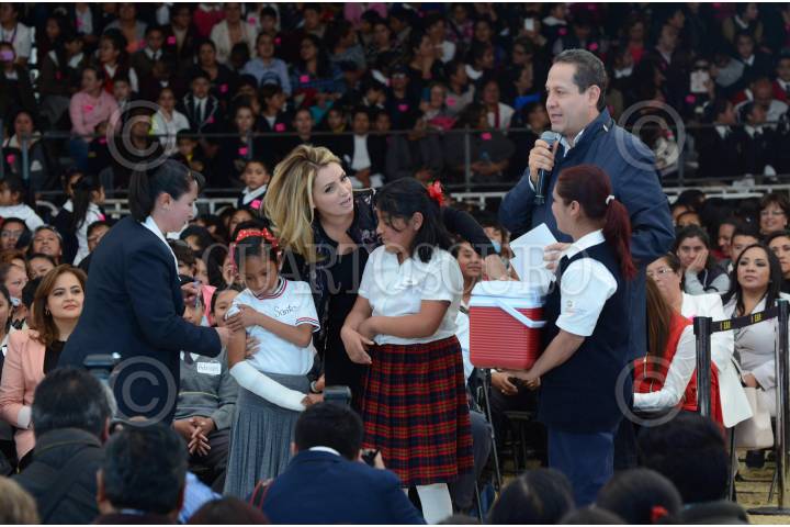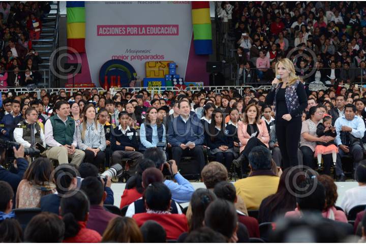 METEPEC, ESTADO DE MÉXICO, 06MARZO2017.- Angélica Rivera de Peña, presidenta honoraria del Sistema para el Desarrollo Integral de la Familia (DIF) Nacional acompaño al gobernador Eruviel Ávila Villegas a la entrega de apoyos del Programa Acciones por la Educación, que se llevó a cabo en el Parque Bicentenario de Metepec. FOTO: ARTEMIO GUERRA BAZ / CUARTOSCURO.COM