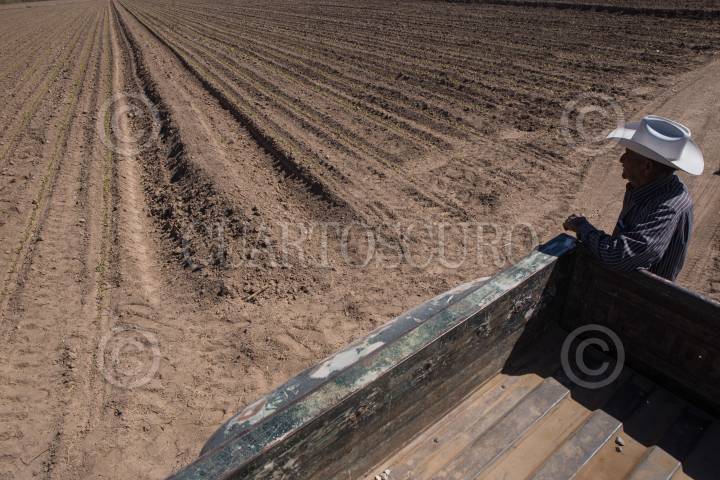 MEXICALI, BAJA CALIFORNIA, 09MARZO2018.-Ambientalistas y ejidatarios de la región miembros de colectivos como Mexicali Resiste, Baja California Resiste y el Comite en Defensa del Agua, han denunciado ante diversos foros nacionales e internaciones que la “construcción con licitaciones irregulares y Constellation Brands, empresa cervecera, en obra en esta ciudad, y que abastecerá al mercado estadounidense” solo traerá más escasez de agua en la región. Explican que la empresa transnacional consumirá 20 millones de metros cúbicos de agua al año para fabricar la cerveza del Grupo Modelo. Esta cantidad es el doble del agua que consume el municipio de Ensenada anualmente, nueve millones, y donde desde hace varios años se raciona el consumo en las colonias populares. Los agricultores de la zona argumentaron que año con año pierden hectáreas de cosechas debido a que ha habido una reducción en el agua que les proveen los distritos de riego, aunado al revestimiento de cemento del canal Todo Americano, ya que anterior a esto, las filtraciones de agua permitían el abastecimiento de barrancos naturales que regaban alrededor de 800 hectáreas. Asimismo, denunciaron que los módulos de riego son sitios donde la corrupción opera y tienen un mercado negro de agua, vendiéndole el agua al ejidatario con mayor capacidad económica, incluso mencionaron que se vende de manera ilegal más agua de la establecida a Tijuana debido a su crecimiento poblacional e industrial. Debido a esto, temen que con la llegada de la cervecera los más afectados sean ellos y sus cultivos. En la imagen, Salvador Mena, dueño del rancho por donde se construyó un acueducto para surtir de agua a la planta en construcción de la cervecera. FOTO: TERCERO DÍAZ /CUARTOSCURO.COM