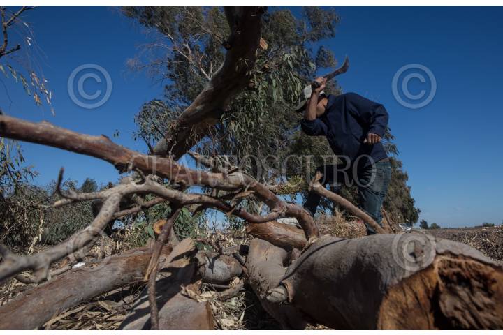 MEXICALI, BAJA CALIFORNIA, 09MARZO2018.-Ambientalistas y ejidatarios de la región miembros de colectivos como Mexicali Resiste, Baja California Resiste y el Comite en Defensa del Agua, han denunciado ante diversos foros nacionales e internaciones que la “construcción con licitaciones irregulares y Constellation Brands, empresa cervecera, en obra en esta ciudad, y que abastecerá al mercado estadounidense” solo traerá más escasez de agua en la región. Explican que la empresa transnacional consumirá 20 millones de metros cúbicos de agua al año para fabricar la cerveza del Grupo Modelo. Esta cantidad es el doble del agua que consume el municipio de Ensenada anualmente, nueve millones, y donde desde hace varios años se raciona el consumo en las colonias populares. Los agricultores de la zona argumentaron que año con año pierden hectáreas de cosechas debido a que ha habido una reducción en el agua que les proveen los distritos de riego, aunado al revestimiento de cemento del canal Todo Americano, ya que anterior a esto, las filtraciones de agua permitían el abastecimiento de barrancos naturales que regaban alrededor de 800 hectáreas. Asimismo, denunciaron que los módulos de riego son sitios donde la corrupción opera y tienen un mercado negro de agua, vendiéndole el agua al ejidatario con mayor capacidad económica, incluso mencionaron que se vende de manera ilegal más agua de la establecida a Tijuana debido a su crecimiento poblacional e industrial. Debido a esto, temen que con la llegada de la cervecera los más afectados sean ellos y sus cultivos. En la imagen, un integrante del campamento conra la empresa transnacional, corta leña para las fogatas que realizan alrededor de la construcción de la planta. FOTO: TERCERO DÍAZ /CUARTOSCURO.COM