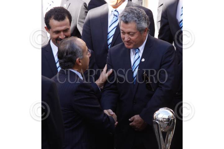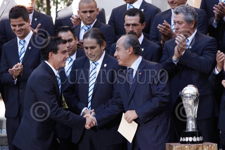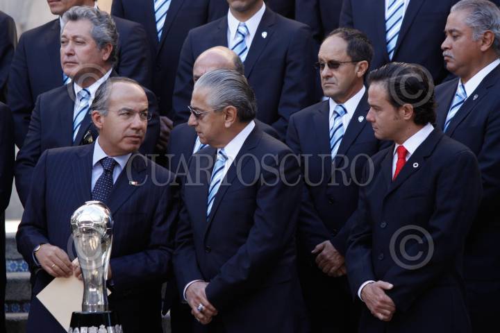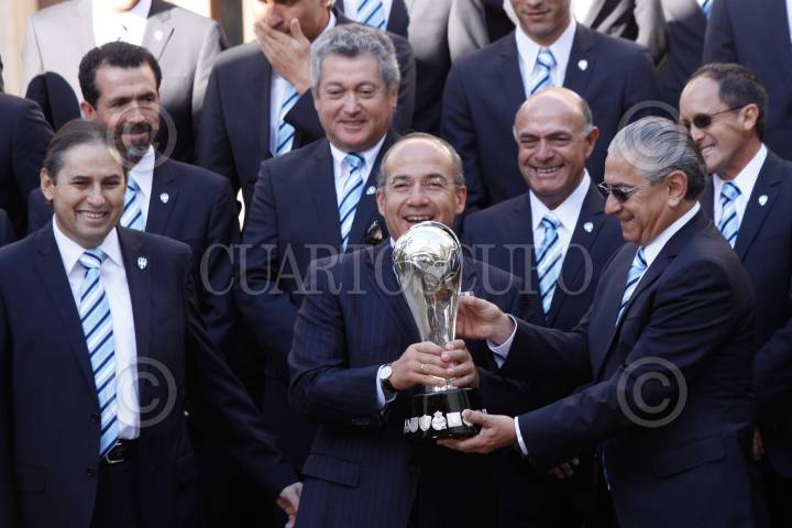 MÉXICO D.F. 18ENERO2011.- El equipo de futbol Rayados de Monterrey acudió a la residencia oficial de Los Pinos donde fueron recibidos tanto la directiva, cuerpo técnico y jugadores, por Felipe Calderón Hinojosa, presidente de México. FOTO: IVÁN STEPHENS/CUARTOSCURO.COM