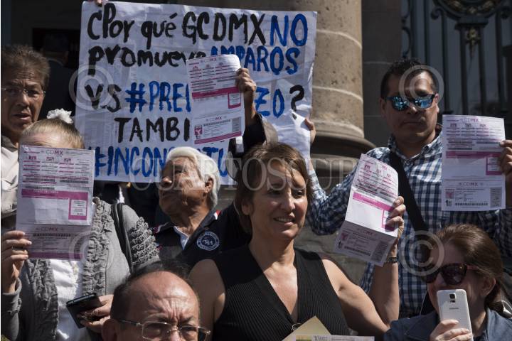CIUDAD DE MÉXICO, 01FEBRERO2017.- Miembros de las organizaciones Suma Humana, Voz de Polanco y Vecinos Unidos, realizaron un mitin en la escalinata de la Asamblea Legislativa en contra del alza en el costo del predial. Algunos de los asistentes con predial en mano, mostraban un aumento del 40 hasta el 500 por ciento. FOTO: TERCERO DÍAZ /CUARTOSCURO.COM