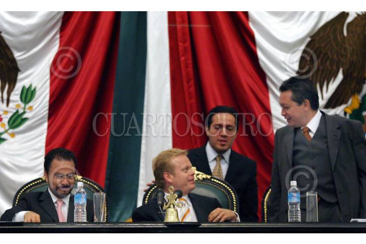 México, D.F., 10SEPTIEMBRE2004.- Jorge García, asambleísta del PRI, Arturo Escobar, PVEM y Julio Escamilla, PRD, son la nueva mesa directiva de ALDF, para su periódo extraordinario en donde decidirán la remoción de Octavio Flores delegado de la GAM. FOTO: Moisés Pablo/CUARTOSCURO.COM
