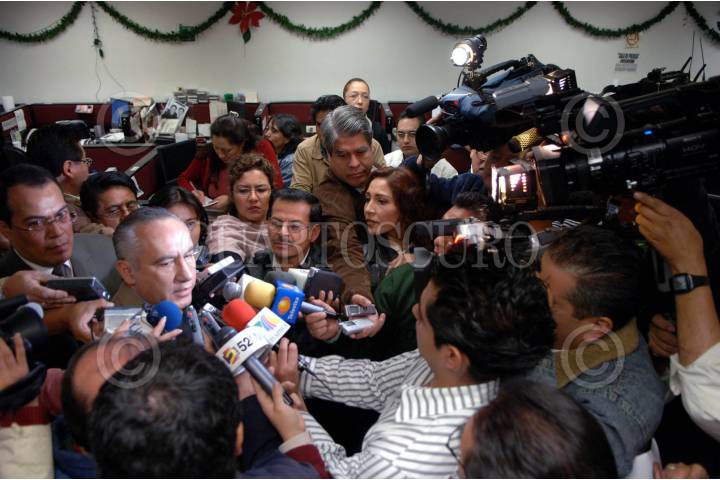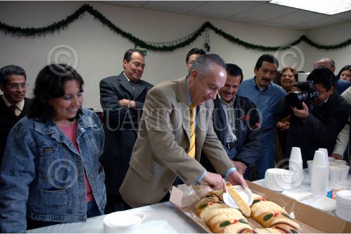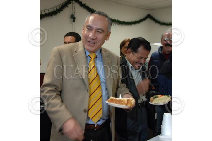 MEXICO, D.F., 06ENERO2006.- Heliodoro Díaz Escárraga, presidente de la Mesa Directiva de la Cámara de Diputados departió con los reporteros de la fuente la tradicional rosca de reyes, en la sala de prensa del Recinto Legislativo FOTO: CUARTOSCURO.COM
