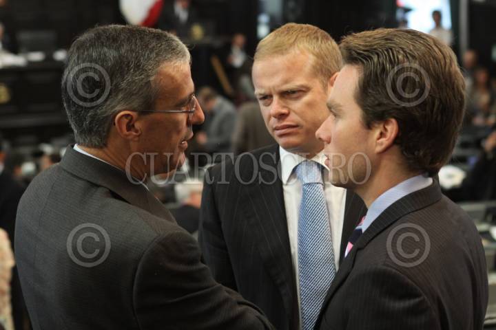 MÉXICO, D.F., 09DICIEMBRE2010.- Los senadores Santiago Creel, Arturo Escobar y José Gonzalez Morfin durante la sesión ordinaria del Senado de la República. FOTO: RODOLFO ANGULO/CUARTOSCURO.COM