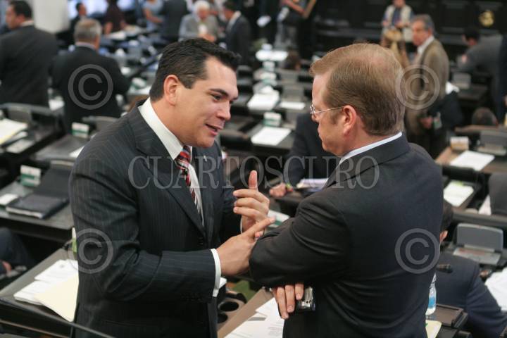 MÉXICO, D.F., 01MARZO2011.- Los senadores Alejandro Moreno Cárdenas y Arturo Escobar y Vega, durante la sesión en la Cámara de Senadores. FOTO: MOISÉS PABLO/CUARTOSCURO.COM