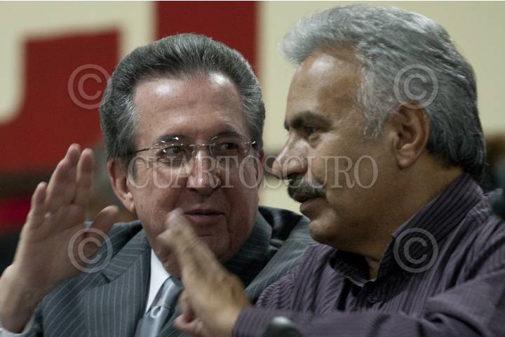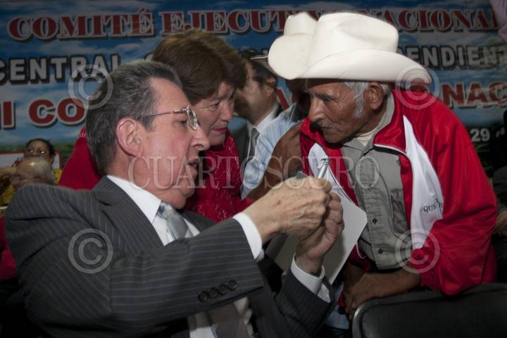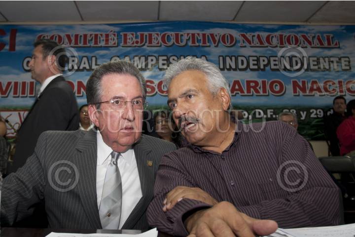MÉXICO D.F., 28MARZO2011.- Abelardo Escobar Prieto Secretaría de la Reforma Agraria y Rafael Gabino Jaime, presidente del Comité Ejecutivo Nacional de la Central Campesina Independiente (CCI), durante la inauguración del 48 Congreso Agrario Nacional. FOTO: GUILLERMO PEREA/CUARTOSCURO.COM