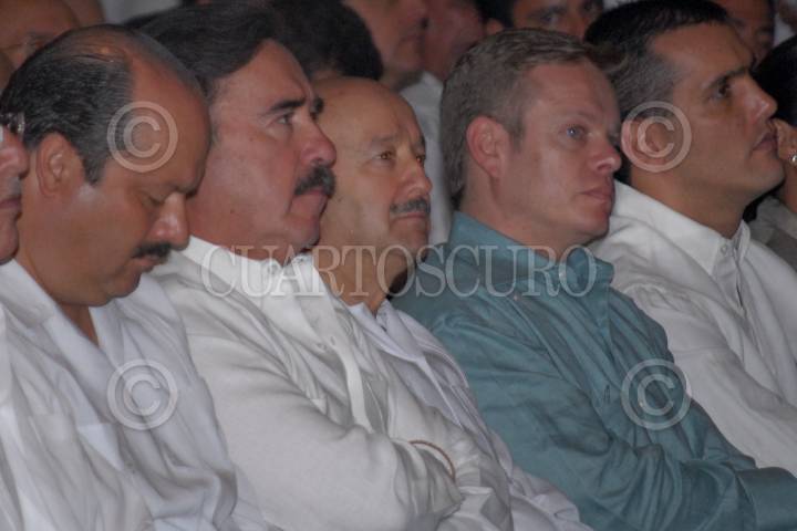 CHETUMAL, QUINTANA ROO, 05ABRIL2011.- César Horacio Duarte, gobernador de Chihuahua, Emilio Gamboa Patrón, líder de la CNOP, Carlos Salinas de Gortari, Ex-Presidente de México, Arturo Escobar Vega, coordinador de los senadores del PVEM y Jorge Emilio González, dirigente del PVEM, estuvieron presentes en la toma de protesta del gobernador Roberto Borge Angulo. FOTO: MARCO POLO GUZMAN HERNANDEZ/CUARTOSCURO.COM