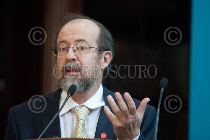 MÉXICO, D.F., 28AABRIL2011.- Agustín Escobar Latapí, investigador del Consejo Nacional de Evaluación de la Política de Desarrollo Social, durante la presentación del informe "Inversión pública en la infancia y la adolescencia en México 2007-20102" en el recinto del Fondo Histórico de la Secretaría de Hacienda “Antonio Ortiz Mena”, en Palacio Nacional. FOTO: MOISÉS PABLO/CUARTOSCURO.COM