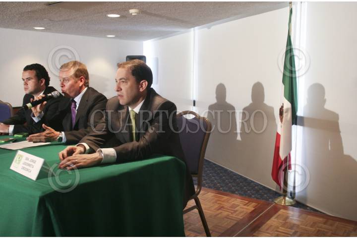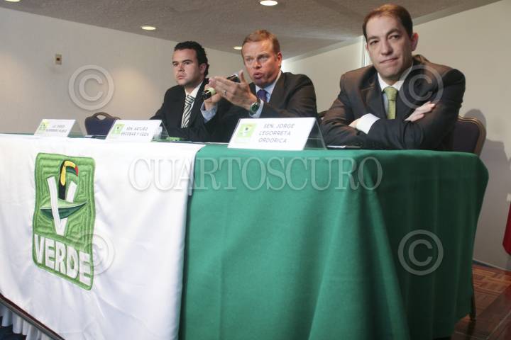 MEXICO, D.F., 21SEPTIEMBRE2011.- Diego Guerrero Rubio, Secretario Tecnico del PVEM, Arturo Escobar, senador y vocero del Verde Ecologista y Jorge Legorreta Ordorica senador, en conferencia de prensa, advirtió que en las próximas elecciones del 2012 pueden haber personas vinculadas con el crimen organizado en las campañas. FOTO: SAÚL LÓPEZ/CUARTOSCURO.COM