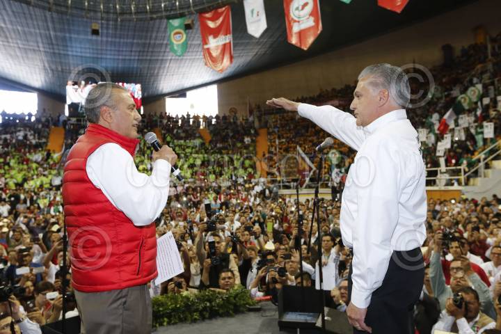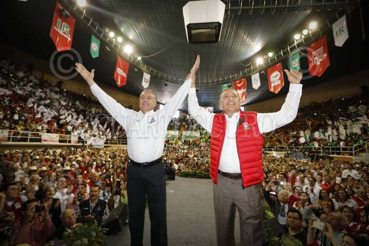 CHIHUAHUA, CHIHUAHUA, 12MARZO2016.- Manlio Fabio Beltrones R., presidente del Comité Ejecutivo Nacional del PRI, en la toma de protesta de Enrique Serrano Escobar como candidato del PRI a la gubernatura del estado de Chihuahua, realizada en el “Gimnasio Manuel Bernardo Aguirre" FOTO: CUARTOSCURO.COM