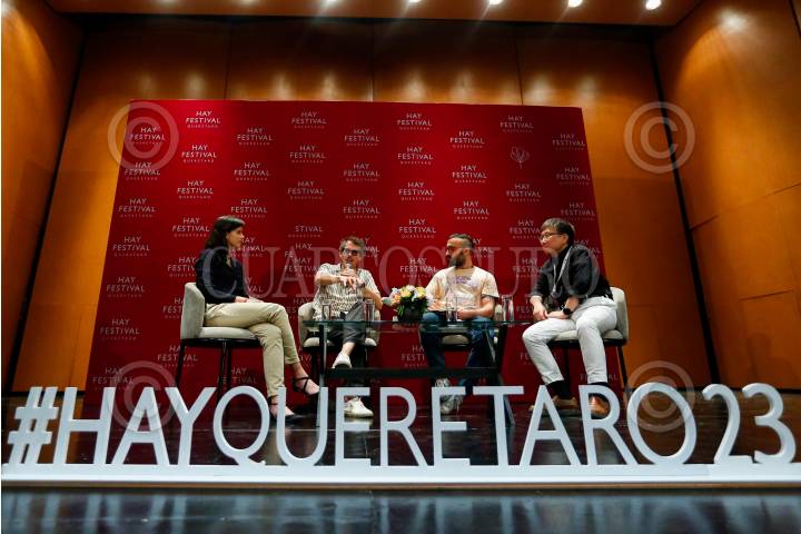 QUERÉTARO, QUERÉTARO, 09SEPTIEMBRE2023.- El economista Ha-joon Chang, el economista francés Thomas Porcher y la filósofa Carissa Veliz participaron en la conversación con Diego Rabasa "La democracia en la era de la tecnologia" durante el tercer día de actividades del Hay Festival Queretaro 2023. FOTO: CÉSAR GÓMEZ/CUARTOSCURO.COM