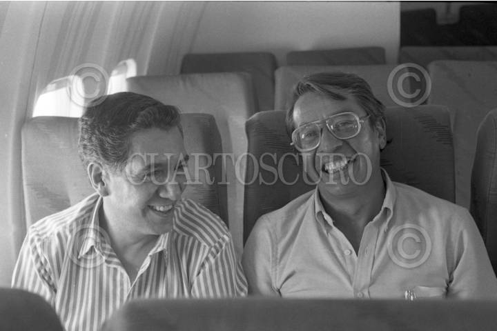 CUAUTLA, MORELOS, 16ENERO2024.- El escritor mexicano José Agustín murió hoy a los 79 años, de acuerdo con declaraciones de su hijo Andrés Ramírez. En la foto, René Avilés y José Agustín durante un viaje a Colima, en septiembre de 1990. FOTO: ARCHIVO/ PEDRO VALTIERRA/CUARTOSCURO.COM