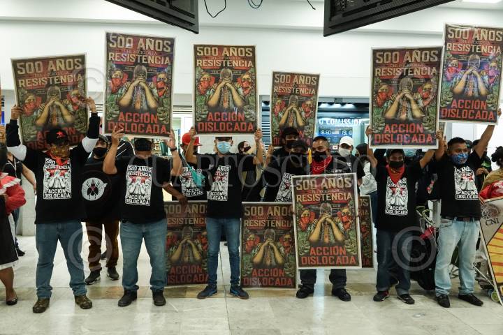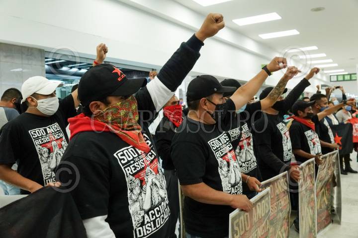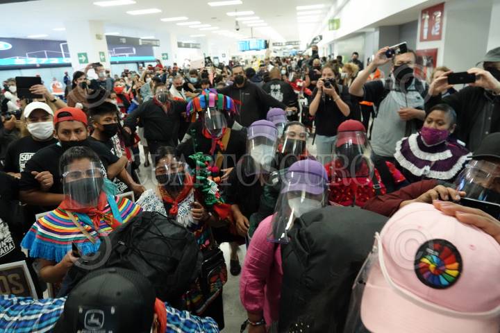 Simpatizantes y compañeros del EZLN esperaron la llegada al AICM del Ecuadr´on Zapatista 421.