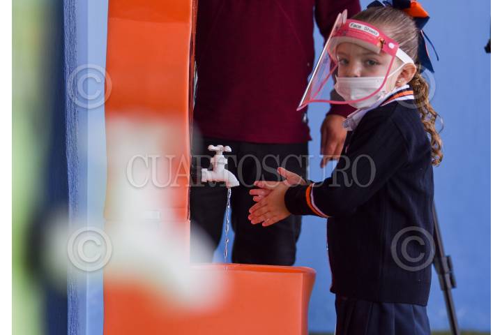 Escuelas particulares en el Estado de México alistan el posible regreso a clases en la entidad, aplicando los diversos protocolos de higiene para mantener a los estudiantes, maestros y personal administrativo libre de cualquier contagio por COVID-19.