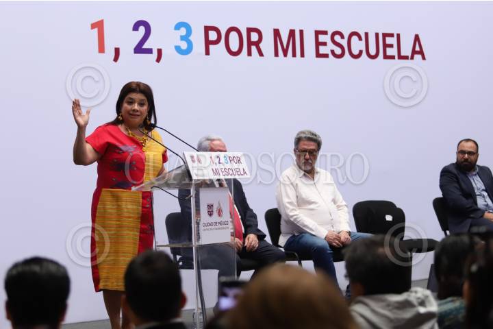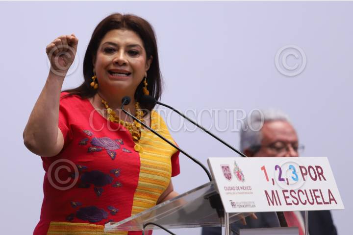CIUDAD DE MÉXICO, 12MAYO2025.- Clara Brugada, jefa de gobierno de la capital, durante la presentación del programa "1,2,3 por Mi Escuela". FOTO: DANIEL AUGUSTO/ CUARTOSCURO.COM