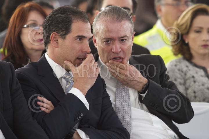 CIUDAD DE MÉXICO, 05JULIO2016.- Aurelio Nuño Mayer, secretario de Educación Básica, y Héctor Gutiérrez de la Garza, director General del Instituto Nacional de la Infraestructura Física Educativa, durante la presentación del "Informe de resultados a seis meses del programa Escuelas al Cien y Bebederos", en la sede de la Secretaría de Educación Pública. FOTO: MOISÉS PABLO /CUARTOSCURO.COM