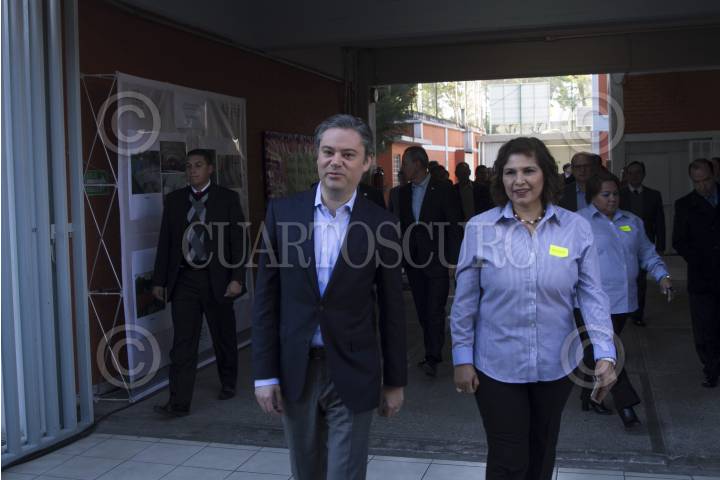 CIUDAD DE MÉXICO, 08DICIEMBRE2016.- Pablo Escudero, presidente de la mesa directiva del Senado de la República, y Quirino Ordaz Coppel, gobernador electo de Sinaloa, asistieron al informe del programa federal "Escuelas al Cien", presentado por Héctor Gutiérrez de la Garza, director del Instituto Nacional de Infraestructura Educativa (Inifed), en la Escuela Primaria Benito Juárez, en la colonia Roma. FOTO: MOISÉS PABLO /CUARTOSCURO.COM