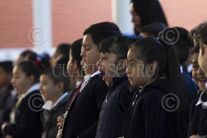 CIUDAD DE MÉXICO, 08DICIEMBRE2016.- Estudiantes del nivel básico durante la presentación del informe del programa federal "Escuelas al Cien", en la Escuela Primaria Benito Juárez, en la colonia Roma. FOTO: MOISÉS PABLO /CUARTOSCURO.COM