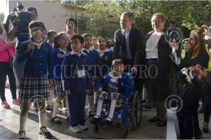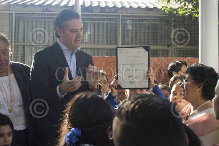 CIUDAD DE MÉXICO, 12JUNIO2017.- Aurelio Nuño Mayer, secretario de Educación, visitó la escuela primaria Francisco Gabilondo Soler en la delegación Álvaro Obregón, para entregar a maestros, alumnos y padres de familia las instalaciones de la escuela remodelada. El secretario informó que se tiene un avance de 13 mil escuelas mejoradas de las 30 mil que se consideran en el programa Escuelas al CIEN. FOTO: SELENE PACHECO /CUARTOSCURO.COM