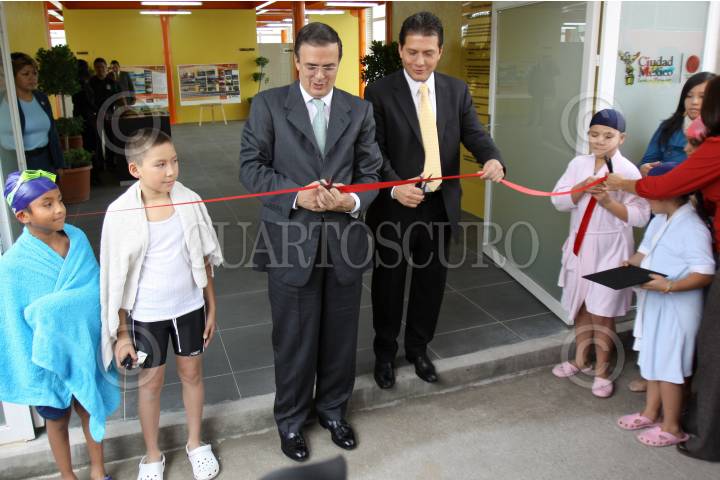 MÉXICO, D.F., 18JUNIO2010.- Marcelo Ebrard, jefe de gobierno del D.F. y Victor Hugo Lobo, jefe delegacional de Gustavo A. Madero inauguraron el Centro Deportivo Bicentenario ubicado en la colonia La Esmeralda. FOTO: RODOLFO ANGULO/CUARTOSCURO.COM