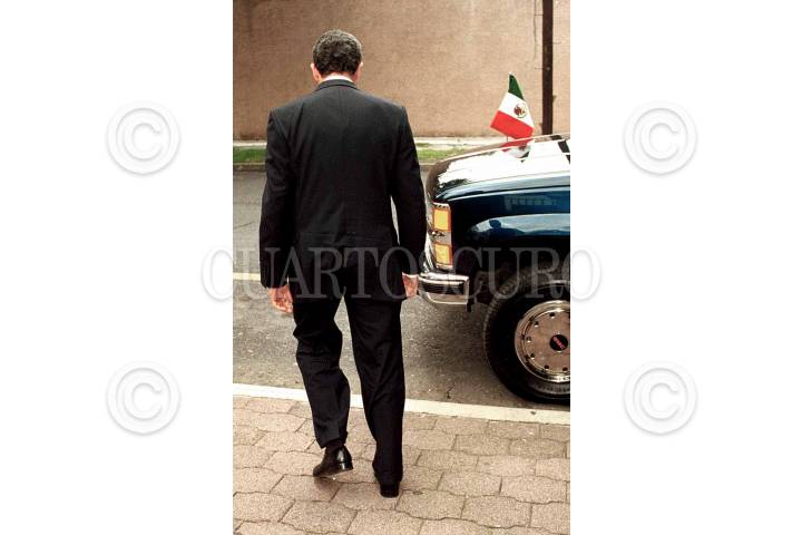 El jefe del ejecutivo, Ernesto Zedillo después de acudir la celebración del 50 aniversario de grupo Acir, en sus oficinas de las Lomas.