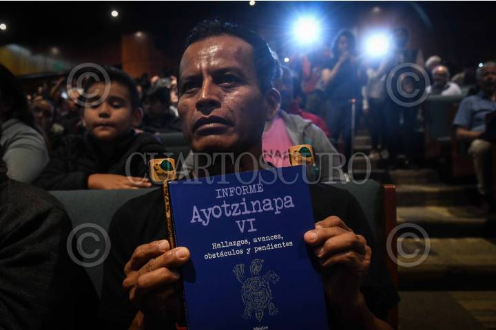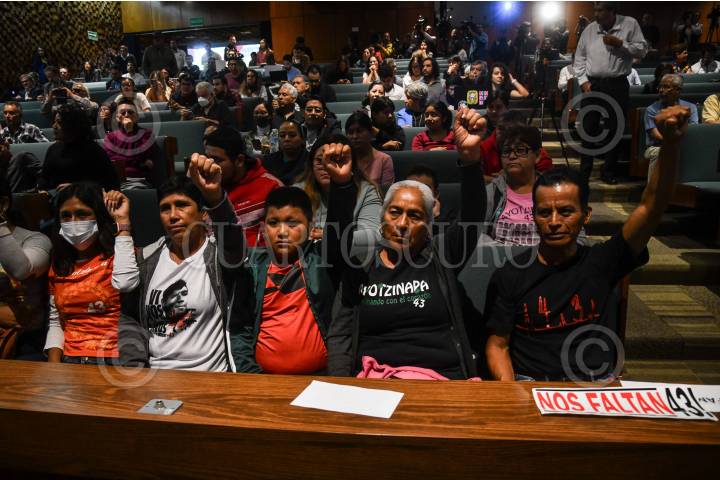 Familiares de los estudiantes normalistas desaparecidos de Ayotzinapa, durante el último informe del grupo Interdisciplinario de Expertos Independientes obre el caso de la desaparición forzada del caso Ayotzinapa.