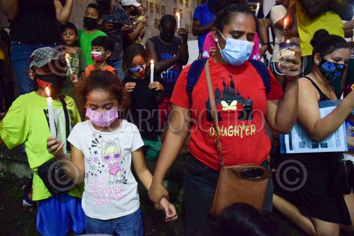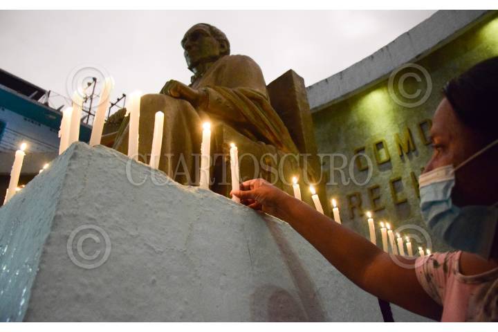 Migrantes de distintas nacionalidades se dieron cita en el parque Benito Juárez. Hicieron un acto de fe hincados y prendieron unas veladoras como simbolismo de esperanza.