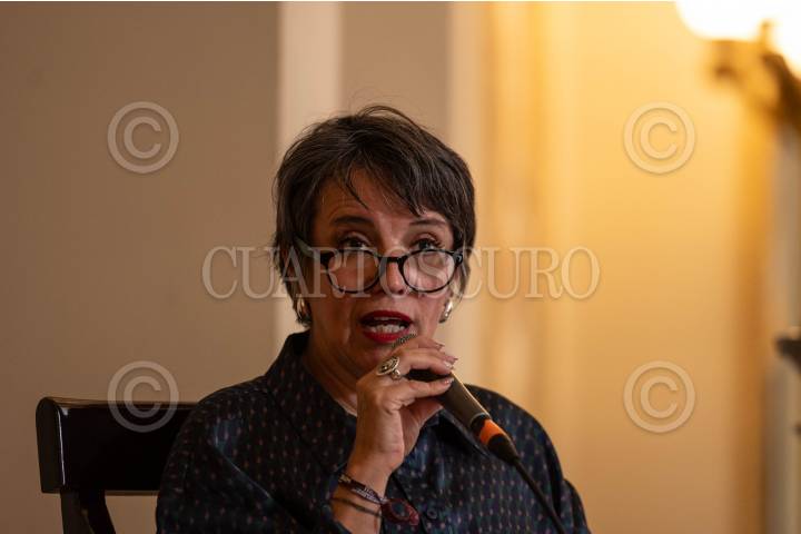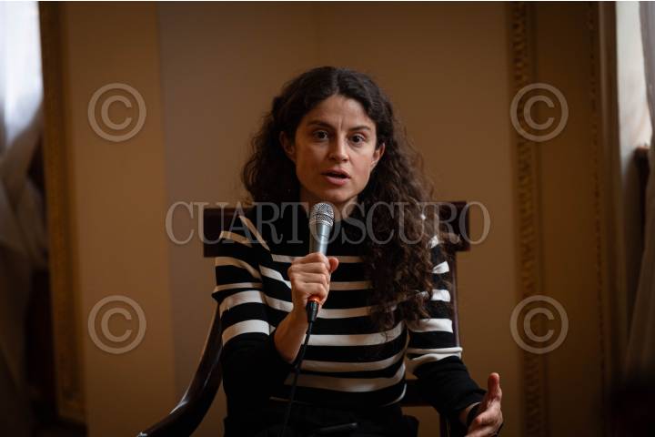 CIUDAD DE MÉXICO, 26JUNIO2024.- La cantautora y periodista Naomi Larsson, ofreció una conferencia de prensa en el Teatro de la Ciudad Esperanza Iris, en la que habló sobre su proyecto musical "Naomi in Blue" y sobre su próximo concierto gratuito, el cual se llevará a cabo el día 30 de junio en el mismo recinto, y contará con la participación de Carla Sariñana y Joaquina Mertz. FOTO: PEDRO ANZA /CUARTOSCURO.COM