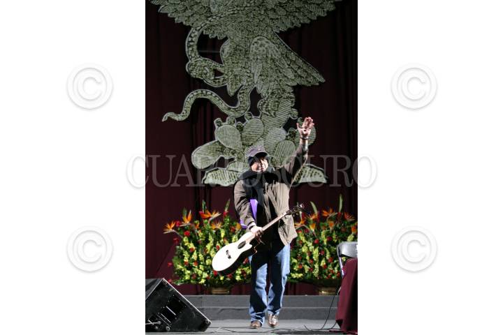 MEXICO, D.F. 20NOVIEMBRE2006.- El cantante cubano Silvio Rodríguez, toco un par de canciones al termino de la toma de Andrés Manuel López Obrador como presidente legitimo, en el zócalo de la ciudad de México. FOTO: NELLY SALAS/CUARTOSCURO.COM