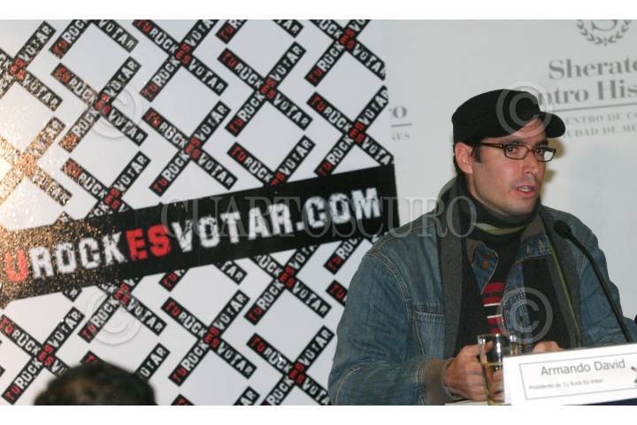 MEXICO, D.F., 24ENERO2006.- Armando David, miembro del Consejo Consejo Directivo TREV, que esta promoviendo el voto de los jóvenes a traves de la campaña Tu Rock Es Votar. FOTO: Moisés Pablo/CUARTOSCURO.COM