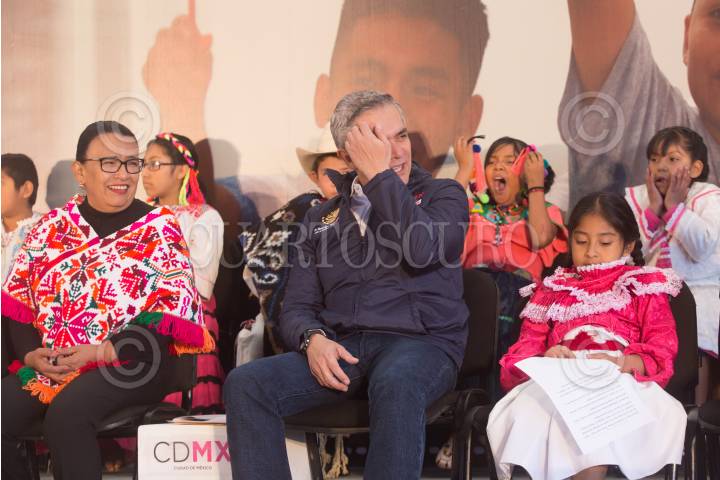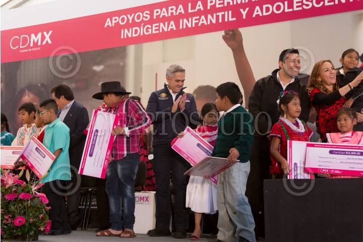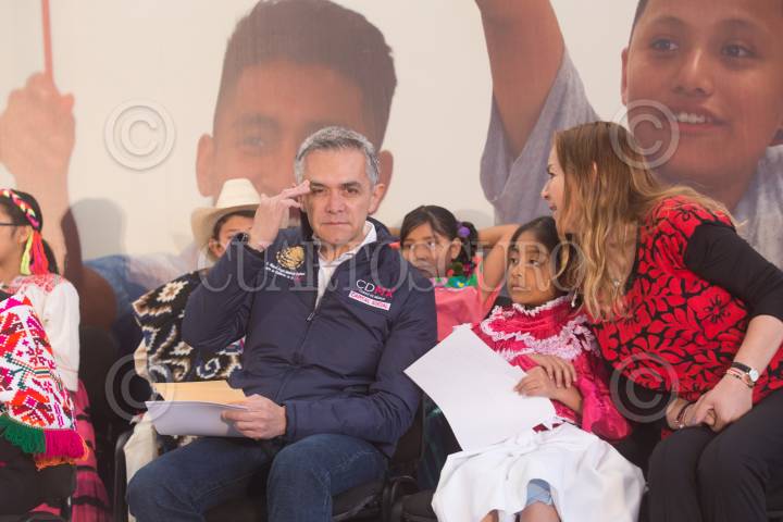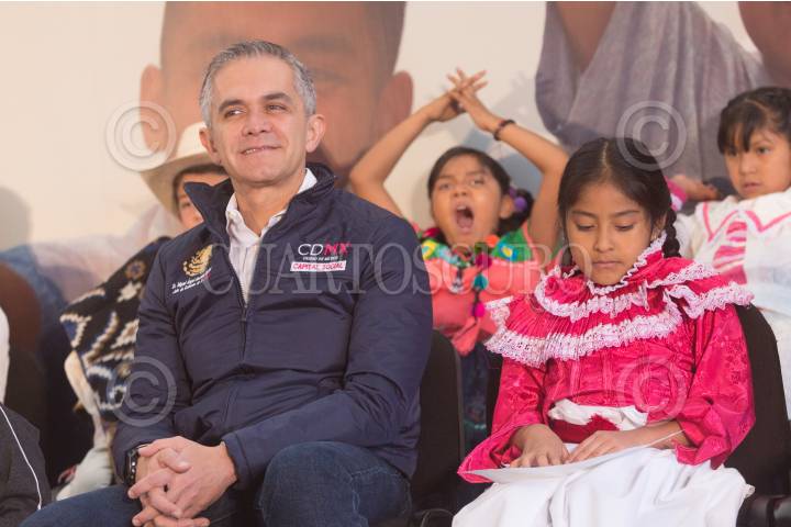 CIUDAD DE MÉXICO, 14NOVIEMBRE2017.- Se llevó a cabo la "Entrega de Apoyos para la Permanencia Escolar Indígena Infantil y Adolescente". El evento fue encabezado por Miguel Ángel Mancera Espinosa, jefe de gobierno, Rosal Isela Rodríguez, secretaria de Sederec, y Mauricio Rodríguez, secretario de Educación dela ciudad. FOTO: TERCERO DÍAZ /CUARTOSCURO.COM