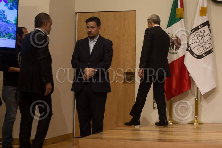 CIUDAD DE MÉXICO, 06ENERO2018.- Miguel Ángel Mancera Espinosa, jefe de gobierno, ofreció una conferencia de prensa para informar sobre varios aspectos de la capital. Algunos de los temas abordados fueron los albergues para personas en condición de calle que padecen las bajas temperaturas, la demolición de edificios dañados por el sismo y la captura de diversos delincuentes. FOTO: TERCERO DÍAZ /CUARTOSCURO.COM