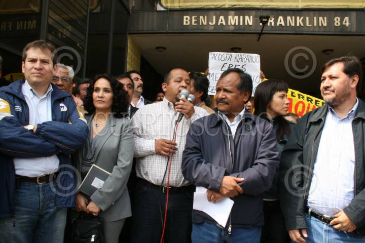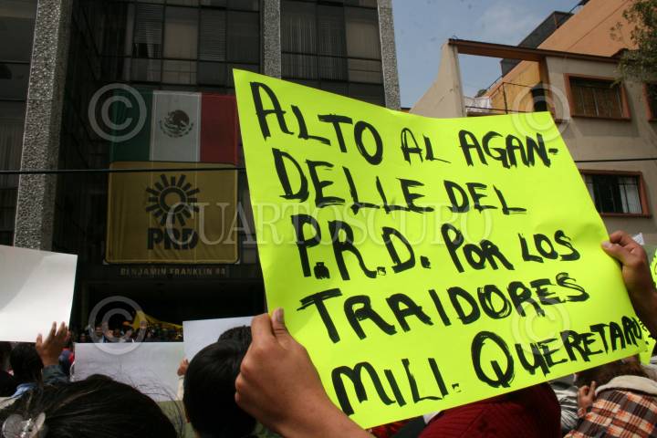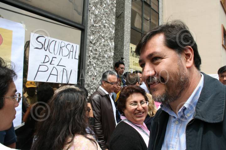 MÈXICO, D.F., 05AGOSTO2008.- Simpatizantes del PRD encabezados por Gerardo Fernandez Noroña encabezaron un mitin enfrente a las intalaciones de CEN del mismo partido para pedir la renuncia del dirigente nacional Guadalupe Acosta Naranjo, así mismo pidieron que Encinas sea el dirigente del partido. FOTO:RICARDO CASTELAN/CUARTOSCURO.COM