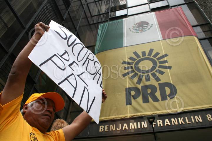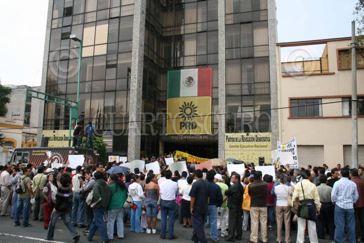 MÈXICO. D.F., 05AGOSTO2008.- Simpatizantes del PRD encabezados por Gerardo Fernandez Noroña realizaron un mitin enfrente a las intalaciones de CEN del mismo partido para pedir la renuncia del dirigente nacional Guadalupe Acosta Naranjo, así mismo pidieron que Encinas sea el dirigente del partido. FOTO:RICARDO CASTELAN/CUARTOSCURO.COM