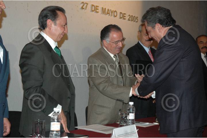 MEXICO, D.F. 27MAYO2005.- El magistrado César Esquinca Muñoa, y Mariano Azuela, presidente de la Suprema Corte de Justicia de la Nación, en la entrega del reconocimiento al defensor público federal más destacado en el año 2004. FOTO: Iván Stephens/CUARTOSCURO.COM