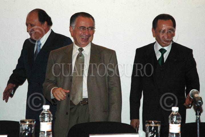 MEXICO, D.F. 27MAYO2005.- La consejera Elvia Díaz de León, Mariano Azuela, presidente de la Suprema Corte de Justicia de la Nación, y el magistrado César Esquinca Muñoa, a su llegada a la entrega del reconocimiento al defensor público federal más destacado en el año 2004. FOTO: Iván Stephens/CUARTOSCURO.COM