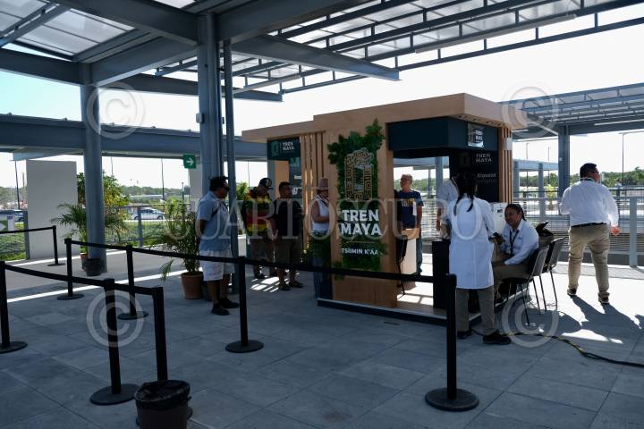 CANCÚN, QUINTANA ROO, 19DICIEMBRE2023.- La estación de Cancún del Tren Maya aún luce con detalles en su construcción, aunque desde el viernes fue abierta al público por el Presidente de México. El Tren Maya es un proyecto de infraestructura de gran envergadura que busca impulsar el desarrollo turístico y económico de la Península de Yucatán. El tren conectará las ciudades de Palenque, Chiapas, Cancún, y Quintana Roo. FOTO: ELIZABETH RUIZ/CUARTOSCURO.COM